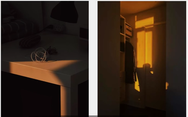 夕阳侧光,三分法构图,水蒸气上升,所以给水蒸气留白的空间,对焦对在加湿器上。后期调的胶片效果。