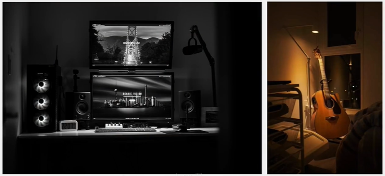 夜晚的时候,可以利用屏幕的光、落地灯光等