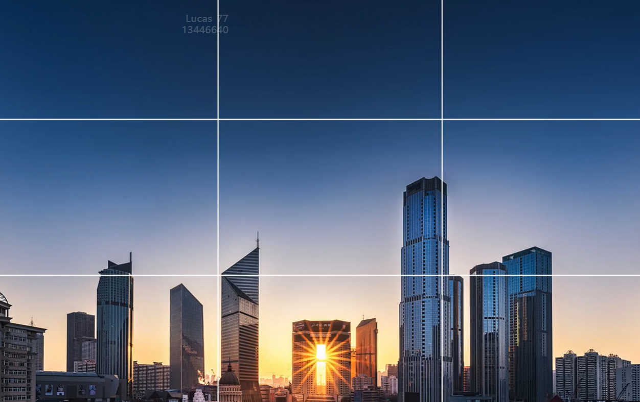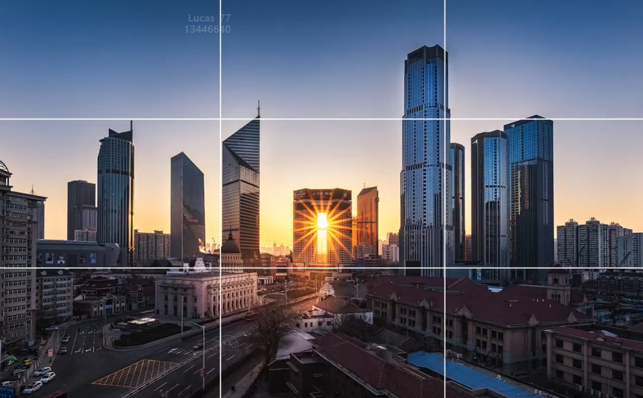 相似的,还有水面和楼体的平衡,如果水面有倒影,就可以让水面多一点,这也是居中对称构图的由来。但是如果水面里没有什么细节,就应该让水面少一点,让楼体在下三分线左右,因为水面不重要了。这也就是三分法和居中取舍中背后的原理。
