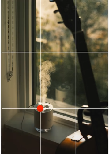 夕阳侧光,三分法构图,水蒸气上升,所以给水蒸气留白的空间,对焦对在加湿器上。后期调的胶片效果。